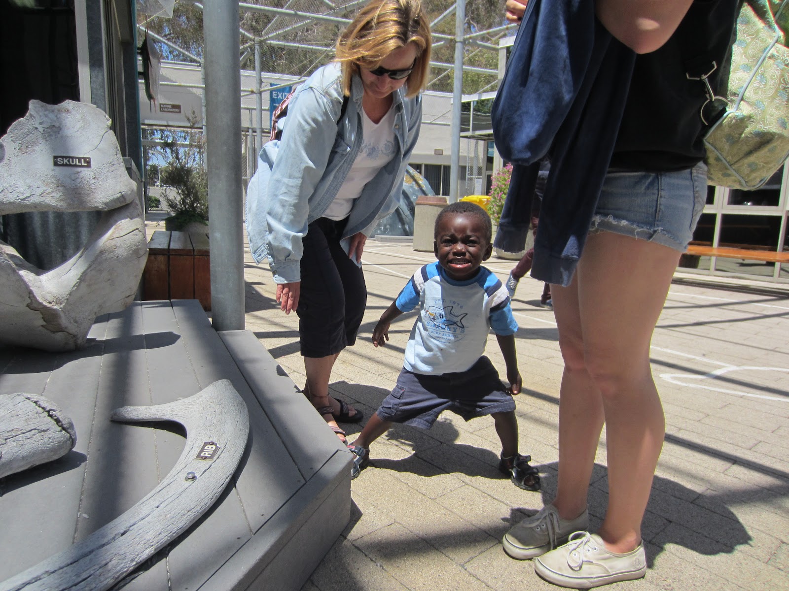 Tommy has been begging to go to a museum lately, so once mom started feeling better we decided to join forces with Aunt Annie and my cousin Molly and head to Cabrillo. We had a lovely picnic on the lawn, went through the aquarium, and played on the playground on the beach nearby. It was tiring, but lots of fun (probably less fun for Molly who did a lot of chasing). Things have certainly improved at Cabrillo since the last time I visited many many years ago. We were all very impressed by the upgrades. The touch tank is very nice and has some very pretty sea stars and the area behind it, which was not for touching, had sharks that Tommy really liked. Nic liked the hands-on exhibits and the ring-shaped fish tank that he could crawl under. Some pics from our afternoon adventure:
